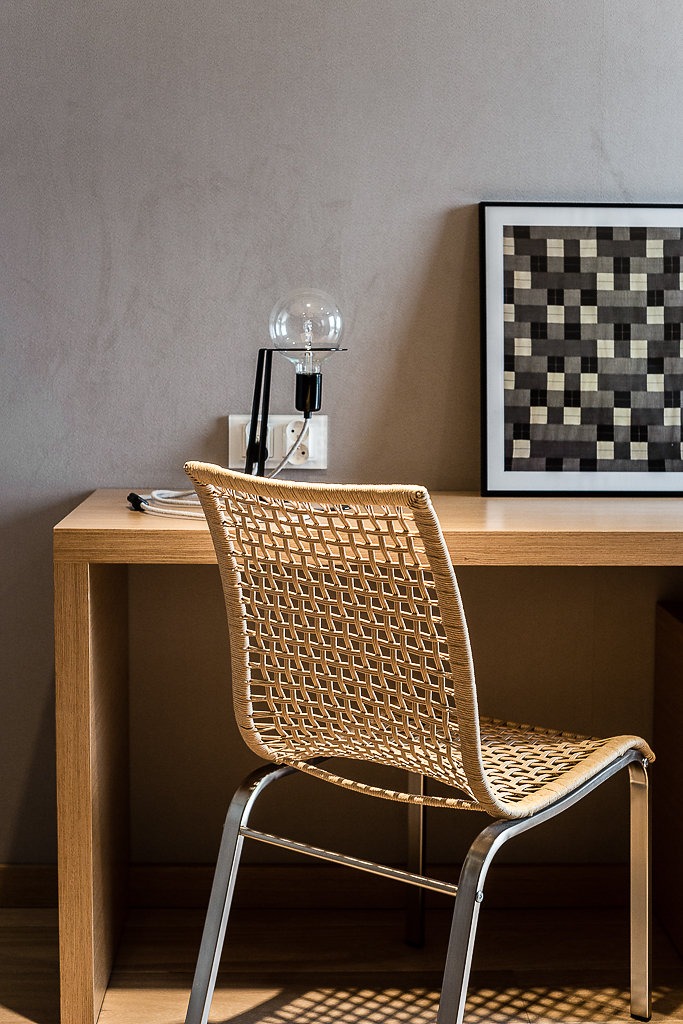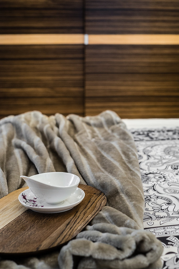 ciepłe wnętrze, naturalne materiały, delikatne motywy japońskie;