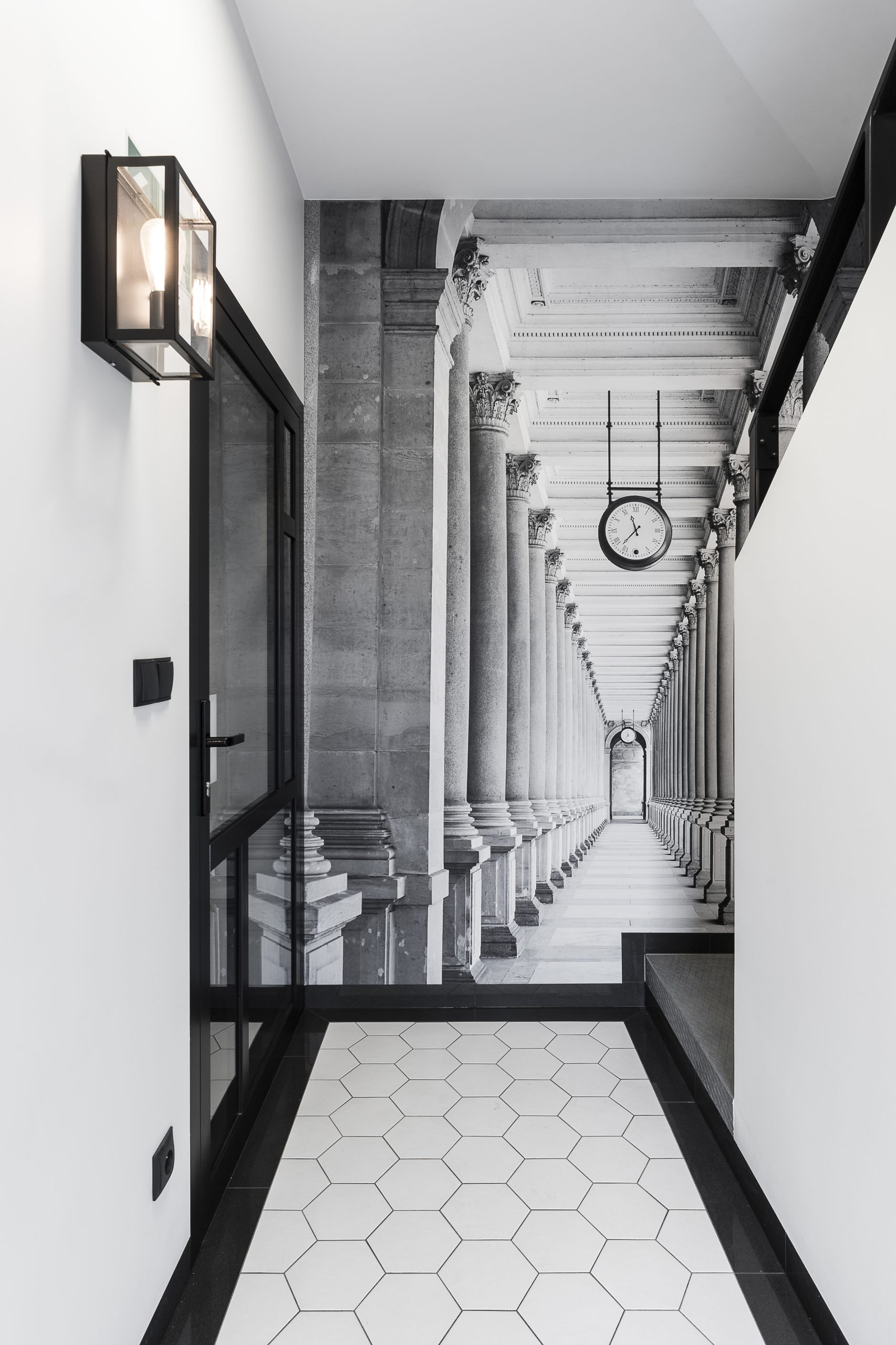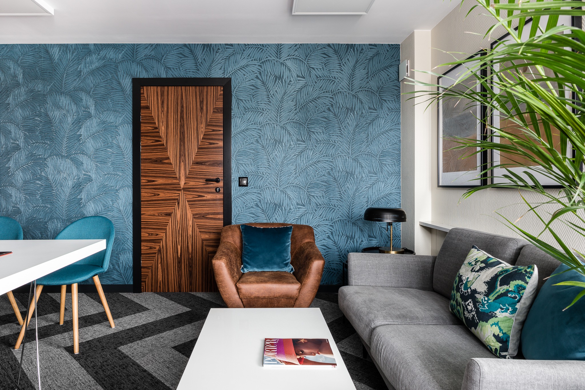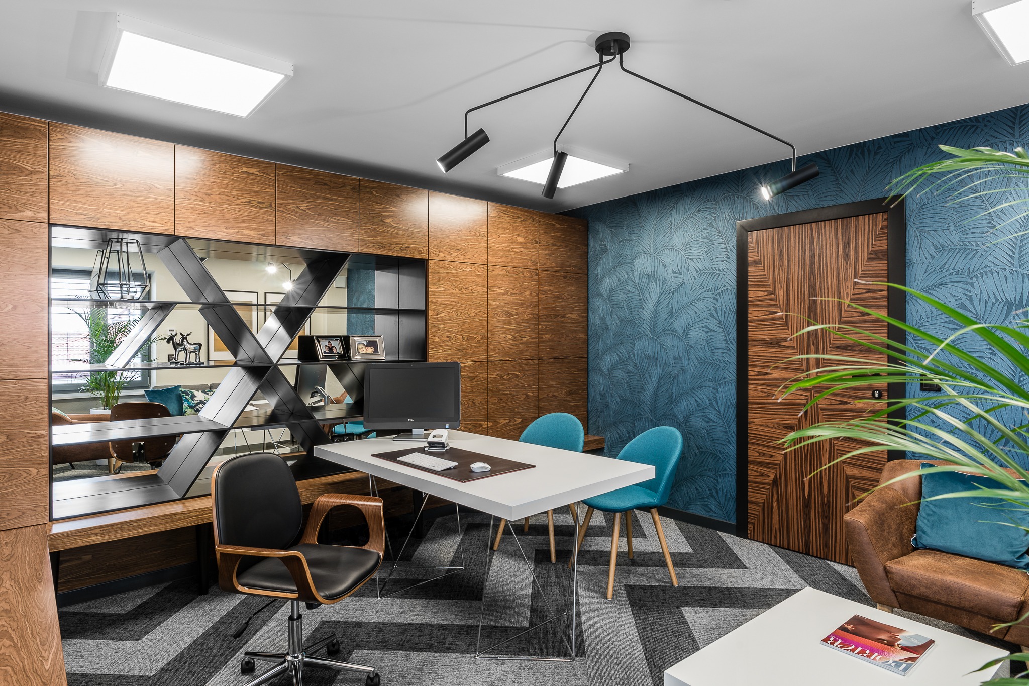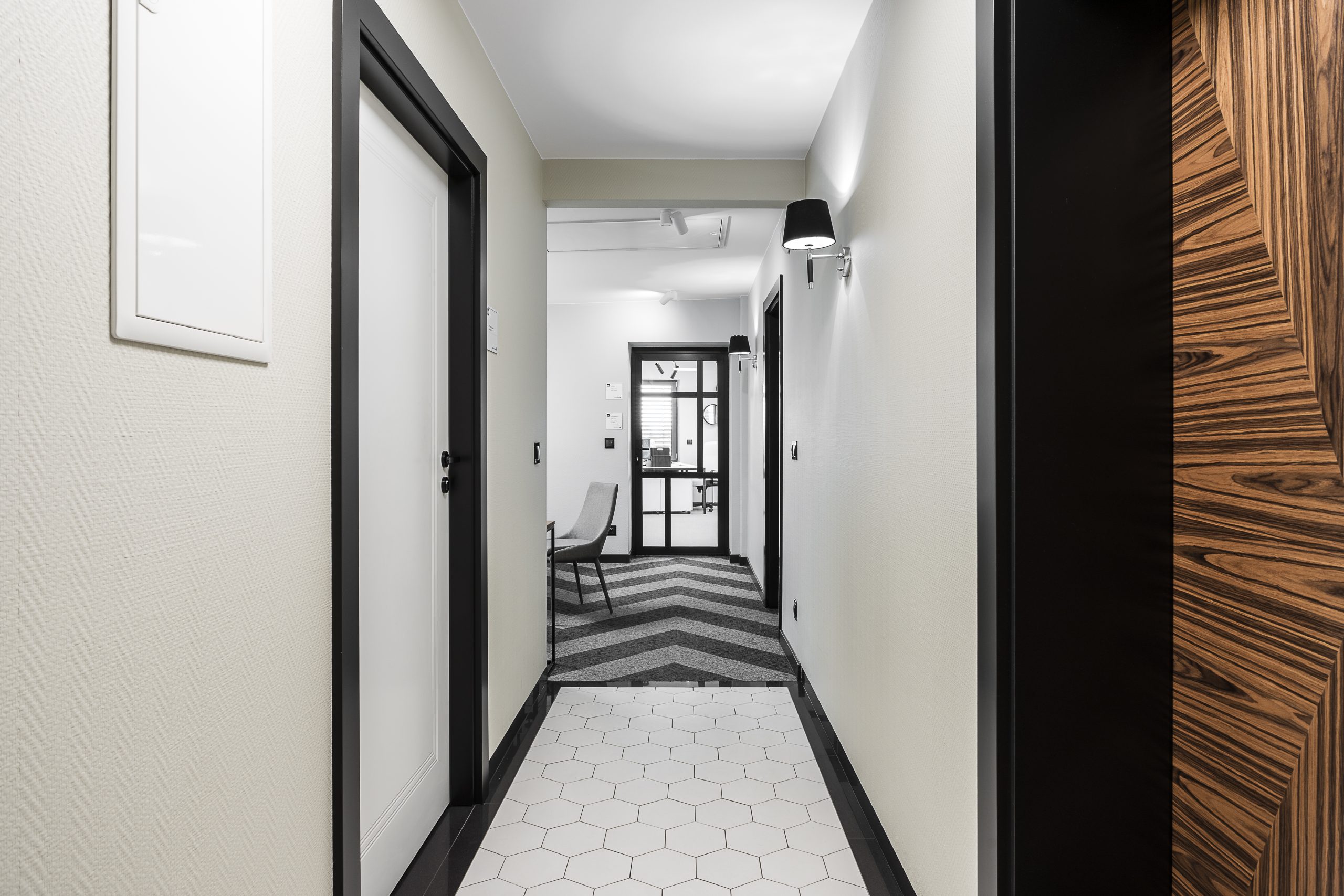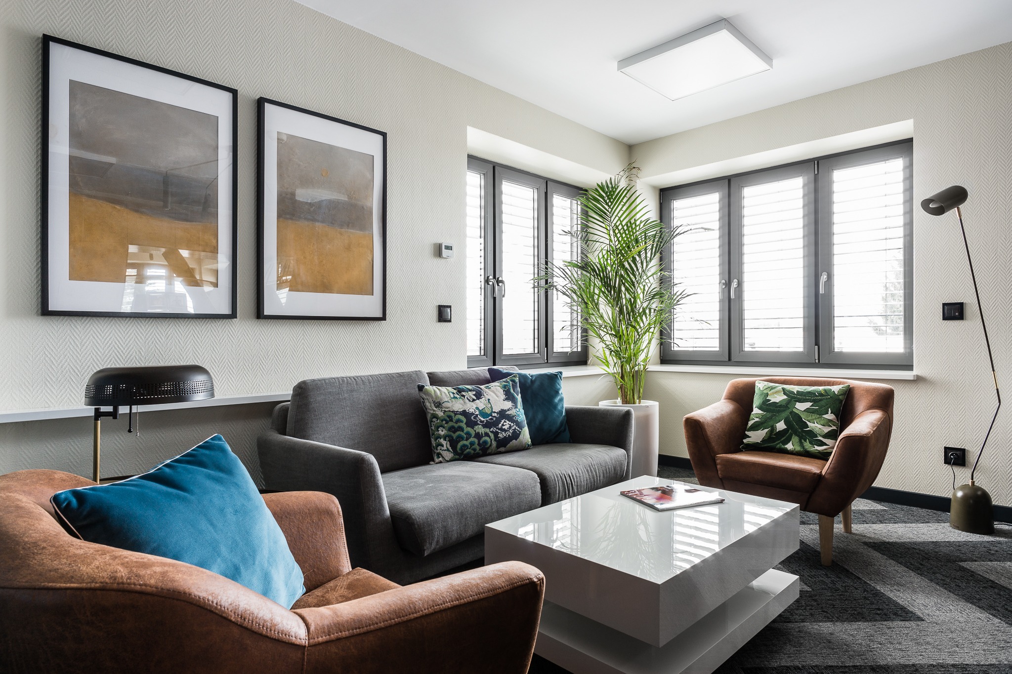 wnętrza wpisujące się w historię budynku, nawiązujące do stylu modernistycznego;